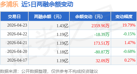 证券之星消息,4月23日,多浦乐(301528)融资买入3877.22万元,融资偿还1519.91万元,融资净买入2357.31万元,融资余额1.43亿元,近20个交易日中有11个交易日出现融资净买入。
