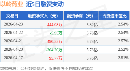 证券之星消息,4月23日,以岭药业(002603)融资买入2293.68万元,融资偿还1849.6万元,融资净买入444.08万元,融资余额5.82亿元。