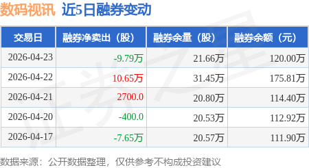 证券之星消息,4月23日,数码视讯(300079)融资买入1832.79万元,融资偿还1494.2万元,融资净买入338.59万元,融资余额5.92亿元,近3个交易日已连续净买入累计1163.25万元。