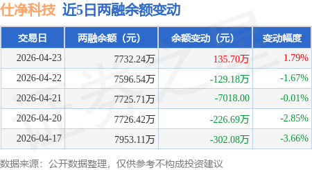 证券之星消息,4月23日,仕净科技(301030)融资买入382.3万元,融资偿还246.59万元,融资净买入135.7万元,融资余额7732.24万元。