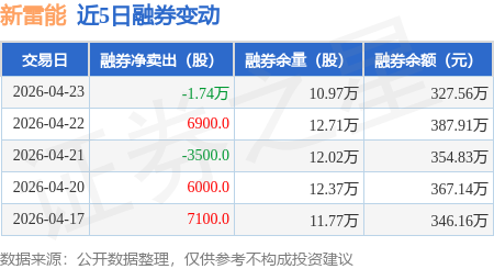 证券之星消息,4月23日,新雷能(300593)融资买入5306.82万元,融资偿还8480.11万元,融资净卖出3173.29万元,融资余额5.57亿元。