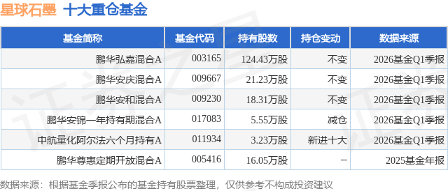 根据2026基金Q1季报公募基金重仓股数据,重仓该股的公募基金共5家,其中持有数量最多的公募基金为鹏华基金的鹏华弘嘉混合A。鹏华弘嘉混合A目前规模为3.53亿元,最新净值2.9275(4月23日),较上一交易日下跌0.63%,近一年上涨24.93%。该公募基金现任基金经理为汤志彦。汤志彦在任的基金产品包括:鹏华安和混合A,管理时间为2020年6月17日至今,期间收益率为41.9%;鹏华安庆混合A,管理时间为2020年6月23日至今,期间收益率为43.66%;鹏华安锦一年持有期混合A,管理时间为2023年3月14日至今,期间收益率为7.03%。