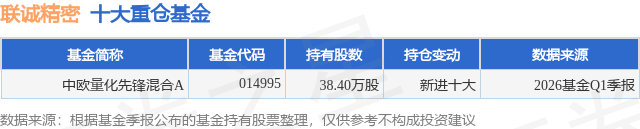 根据2026基金Q1季报公募基金重仓股数据,重仓该股的公募基金共1家,其中持有数量最多的公募基金为中欧基金的中欧量化先锋混合A。中欧量化先锋混合A目前规模为1.79亿元,最新净值1.1522(4月23日),较上一交易日下跌1.12%,近一年上涨33.16%。该公募基金现任基金经理为曲径 汤旻玮。曲径在任的基金产品包括:中欧数据挖掘多因子混合A,管理时间为2016年1月13日至今,期间收益率为238.57%;中欧量化驱动混合A,管理时间为2018年5月16日至今,期间收益率为105.27%;中欧金安量化混合A,管理时间为2022年1月20日至今,期间收益率为50.75%;汤旻玮在任的基金产品包括:中欧小盘成长混合A,管理时间为2025年7月23日至今,期间收益率为38.98%;中欧大盘智选混合发起A,管理时间为2025年12月9日至今,期间收益率为12.57%;
