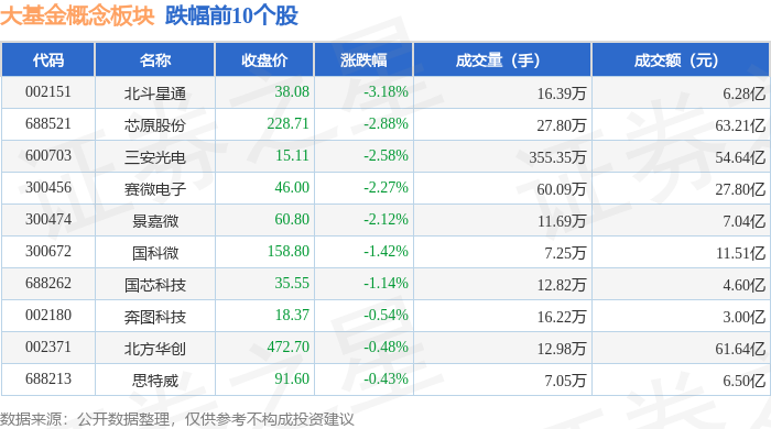 从资金流向上来看,当日大基金概念板块主力资金净流入25.82亿元,游资资金净流出11.49亿元,散户资金净流出14.32亿元。大基金概念板块个股资金流向见下表: