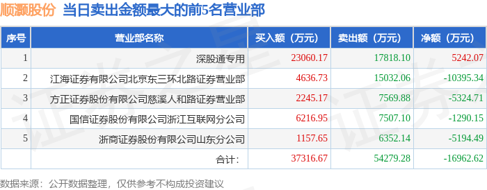 证券之星消息,沪深交易所2026年4月24日公布的交易公开信息显示,顺灏股份(002565)因日振幅值达到15%的前5只证券,日换手率达到20%的前5只证券登上龙虎榜。此次是近5个交易日内第4次上榜。