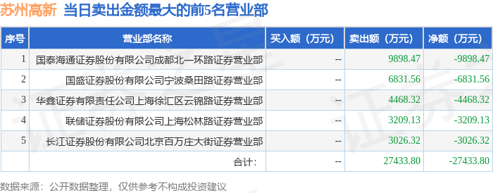 证券之星消息,沪深交易所2026年4月24日公布的交易公开信息显示,苏州高新(600736)因有价格涨跌幅限制的日换手率达到20%的前五只证券登上龙虎榜。此次是近5个交易日内第3次上榜。