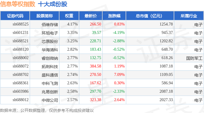信息等权(000077)指数十大成份股详情如下: