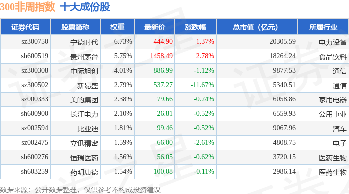 300非周(000969)指数十大成份股详情如下: