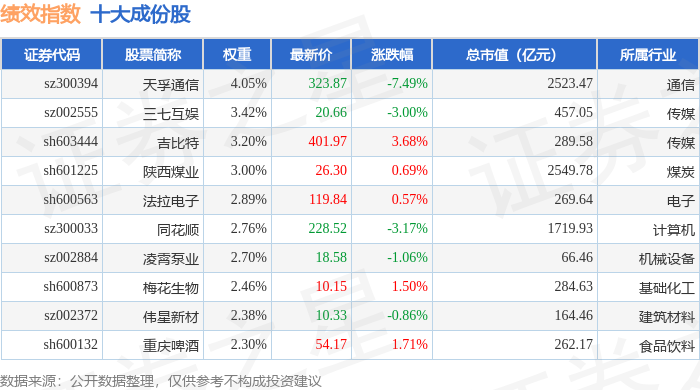绩效指数(399398)十大成份股详情如下: