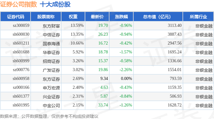 证券公司(399975)指数十大成份股详情如下: