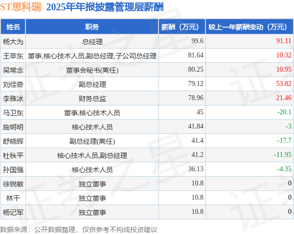 证券之星消息,ST思科瑞发布2025年年报,数据显示:公司主营收入1.92亿元,同比增33.39%。归母净利润为-2078.15万元,同比增1.06%。扣非净利润为-2081.5万元,同比增20.01%。当年公司员工总数521人,同比增5.68%。人均薪酬17.68万元(注:"人均薪酬"根据定期报告中"应付职工薪酬"附注的本期增加值 / 员工总数计算而来),同比减0.86%。人均创收36.82万元,同比增26.22%。其中管理层薪酬总额为657.54万元,同比上一年增20.23%,薪酬最高的为总经理杨大为,薪酬99.6万元。