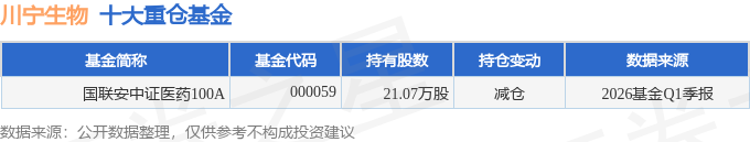 持有川宁生物最多的基金为国联安中证医药100A,目前规模为1.53亿元,最新净值1.0019(4月23日),较上一交易日下跌0.75%,近一年上涨6.43%。该基金现任基金经理为黄欣。