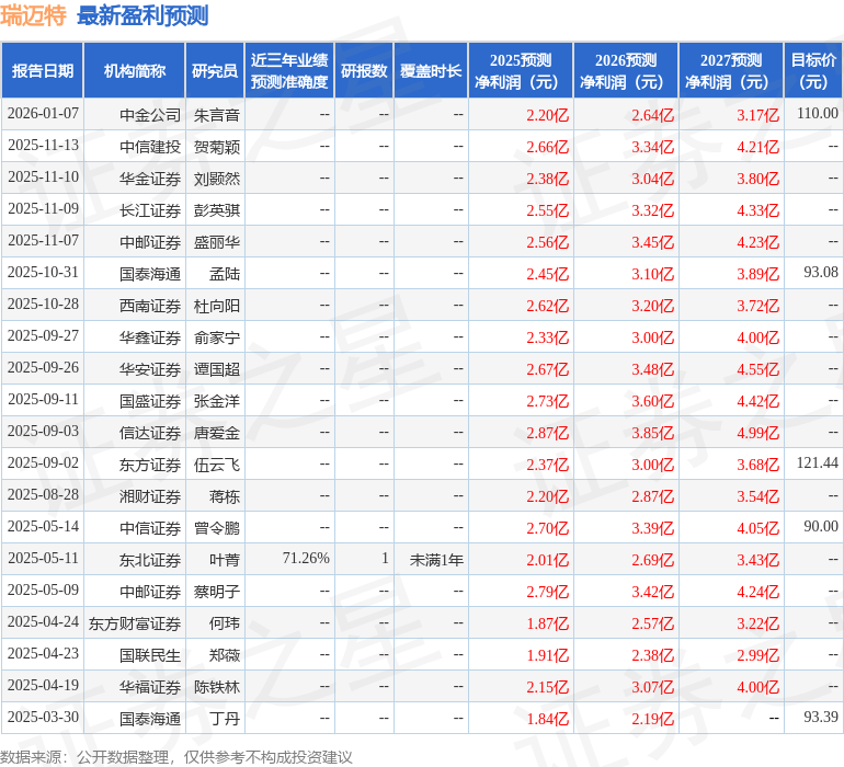 分析师工具显示:证券研究员普遍预期2026年业绩在2.64亿元,每股收益均值在2.95元。