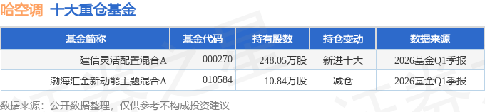 持有哈空调最多的基金为建信灵活配置混合A,目前规模为4.06亿元,最新净值1.9141(4月24日),较上一交易日上涨0.96%,近一年上涨47.75%。该基金现任基金经理为叶乐天 郭志腾。
