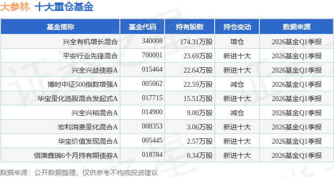 持有大参林最多的基金为兴全有机增长混合,目前规模为11.06亿元,最新净值3.2036(4月23日),较上一交易日下跌0.02%,近一年上涨36.08%。该基金现任基金经理为虞淼 徐留明。