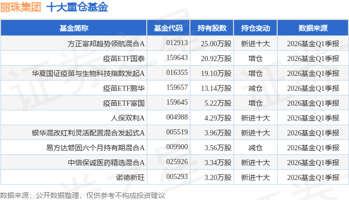 持有丽珠集团最多的基金为方正富邦趋势领航混合A,目前规模为3.95亿元,最新净值1.0009(4月24日),较上一交易日下跌0.16%,近一年上涨21.44%。该基金现任基金经理为崔建波。