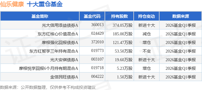 持有仙乐健康最多的基金为光大信用添益债券A,目前规模为65.42亿元,最新净值1.338(4月23日),较上一交易日下跌0.37%,近一年上涨28.41%。该基金现任基金经理为黄波。
