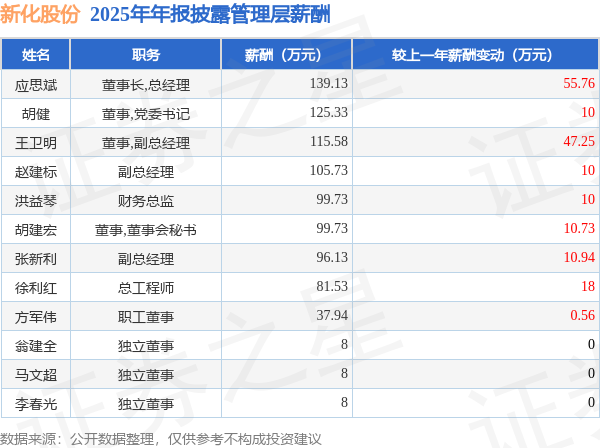 证券之星消息,新化股份发布2025年年报,数据显示:公司主营收入29.43亿元,同比减0.76%。归母净利润为2.6亿元,同比增14.78%。扣非净利润为2.41亿元,同比增9.25%。当年公司员工总数1316人,同比增7.6%。人均薪酬17.77万元(注:"人均薪酬"根据定期报告中"应付职工薪酬"附注的本期增加值 / 员工总数计算而来),同比增3.91%。人均创收223.65万元,同比减7.77%。人均创利22.98万元,同比增2.25%。其中管理层薪酬总额为924.83万元,同比上一年增23.05%,薪酬最高的为董事长,总经理应思斌,薪酬139.13万元。