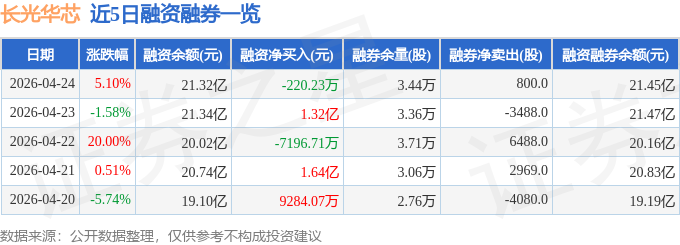 长光华芯融资融券信息显示,融资方面,当日融资买入7.56亿元,融资偿还7.58亿元,融资净偿还220.23万元。融券方面,融券卖出1400.0股,融券偿还600.0股,融券余量3.44万股,融券余额1325.45万元。融资融券余额21.45亿元。