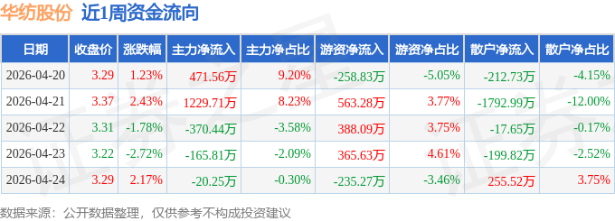 资金流向数据方面,本周华纺股份主力资金合计净流入1144.77万元,游资资金合计净流入822.9万元,散户资金合计净流出1967.67万元。本周资金流向一览见下表: