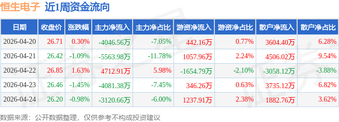 资金流向数据方面,本周恒生电子主力资金合计净流出1.21亿元,游资资金合计净流入1429.5万元,散户资金合计净流入1.07亿元。本周资金流向一览见下表: