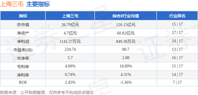 该股主要指标及行业内排名如下: