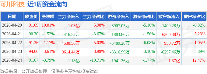 资金流向数据方面,本周可川科技主力资金合计净流入8279.55万元,游资资金合计净流出2.15亿元,散户资金合计净流入1.33亿元。本周资金流向一览见下表: