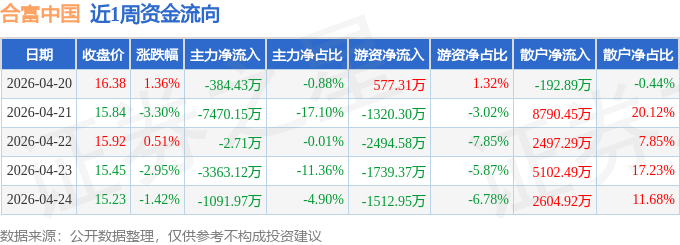 资金流向数据方面,本周合富中国主力资金合计净流出1.23亿元,游资资金合计净流出6489.89万元,散户资金合计净流入1.88亿元。本周资金流向一览见下表: