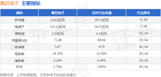 该股主要指标及行业内排名如下: