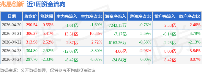 资金流向数据方面,本周兆易创新主力资金合计净流出5.91亿元,游资资金合计净流出4.45亿元,散户资金合计净流入10.36亿元。本周资金流向一览见下表: