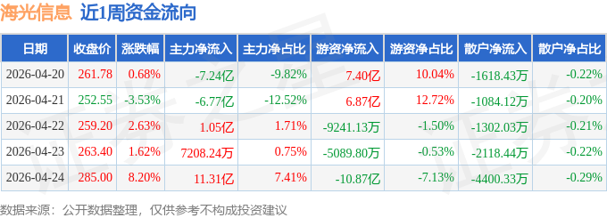 资金流向数据方面,本周海光信息主力资金合计净流出9197.11万元,游资资金合计净流入1.97亿元,散户资金合计净流出1.05亿元。本周资金流向一览见下表: