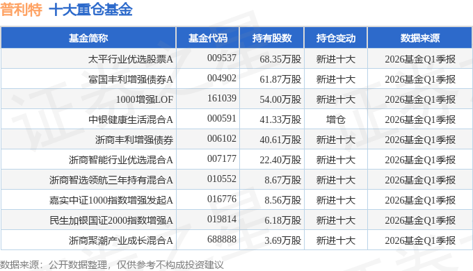 持有普利特最多的基金为太平行业优选股票A,目前规模为1.43亿元,最新净值1.2438(4月24日),较上一交易日下跌0.51%,近一年上涨56.61%。该基金现任基金经理为林开盛。