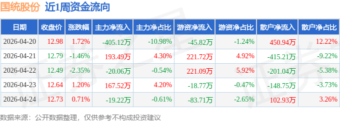 资金流向数据方面,本周国统股份主力资金合计净流出83.38万元,游资资金合计净流入294.51万元,散户资金合计净流出211.13万元。本周资金流向一览见下表: