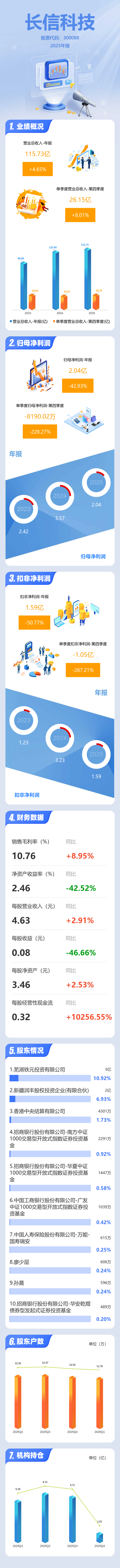 证券之星消息,长信科技2025年年报显示,当年度公司主营收入115.73亿元,同比上升4.66%;归母净利润2.04亿元,同比下降42.94%;扣非净利润1.59亿元,同比下降50.78%;其中2025年第四季度,公司单季度主营收入26.15亿元,同比上升8.01%;单季度归母净利润-8190.02万元,同比下降228.27%;单季度扣非净利润-1.05亿元,同比下降267.21%;负债率51.48%,投资收益5146.18万元,财务费用8189.76万元,毛利率10.76%。
