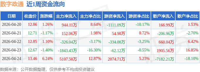 资金流向数据方面,本周数字政通主力资金合计净流入4034.2万元,游资资金合计净流入622.38万元,散户资金合计净流出4656.58万元。本周资金流向一览见下表: