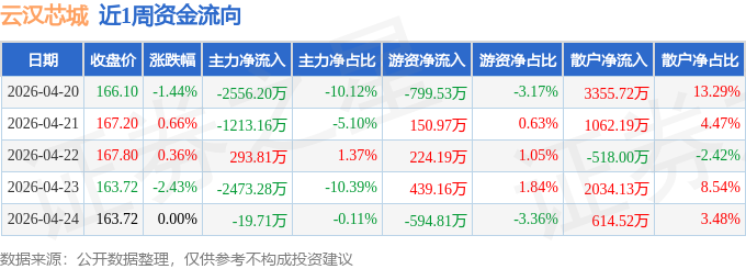 资金流向数据方面,本周云汉芯城主力资金合计净流出5968.54万元,游资资金合计净流出580.02万元,散户资金合计净流入6548.55万元。本周资金流向一览见下表: