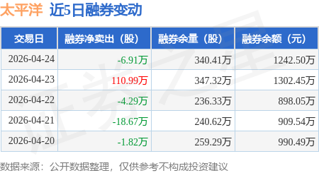 证券之星消息,4月24日,太平洋(601099)融资买入6310.21万元,融资偿还4885.86万元,融资净买入1424.35万元,融资余额20.73亿元,近3个交易日已连续净买入累计2759.4万元。