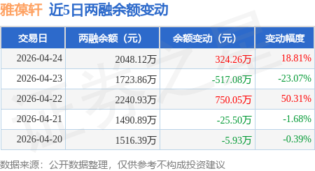 证券之星消息,4月24日,雅葆轩(920357)融资买入626.79万元,融资偿还302.53万元,融资净买入324.26万元,融资余额2048.12万元。