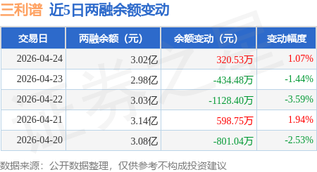 证券之星消息,4月24日,三利谱(002876)融资买入1857.87万元,融资偿还1538.78万元,融资净买入319.09万元,融资余额3.02亿元。