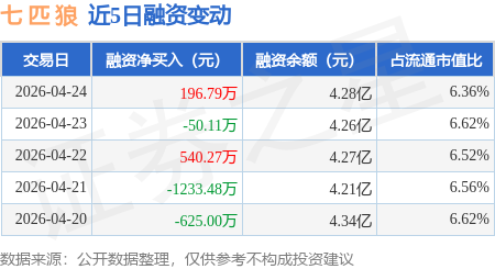 证券之星消息,4月24日,七 匹 狼(002029)融资买入3453.36万元,融资偿还3256.57万元,融资净买入196.79万元,融资余额4.28亿元。
