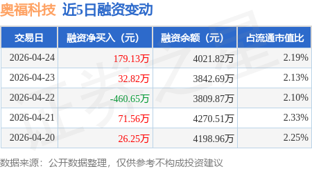 证券之星消息,4月24日,奥福科技(688021)融资买入453.27万元,融资偿还274.14万元,融资净买入179.13万元,融资余额4021.82万元。