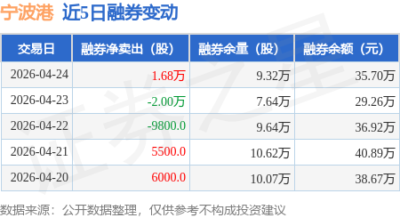 证券之星消息,4月24日,宁波港(601018)融资买入1472.83万元,融资偿还1396.06万元,融资净买入76.76万元,融资余额2.35亿元,近20个交易日中有14个交易日出现融资净买入。