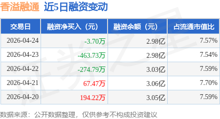 证券之星消息,4月24日,香溢融通(600830)融资买入218.32万元,融资偿还222.03万元,融资净卖出3.7万元,融资余额2.98亿元。