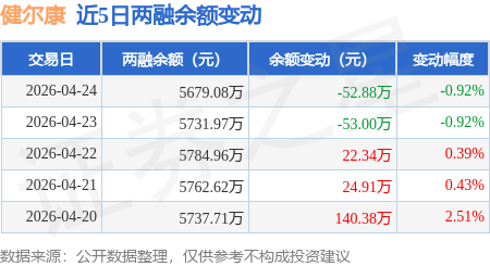 证券之星消息,4月24日,健尔康(603205)融资买入657.34万元,融资偿还711.5万元,融资净卖出54.16万元,融资余额5651.04万元。