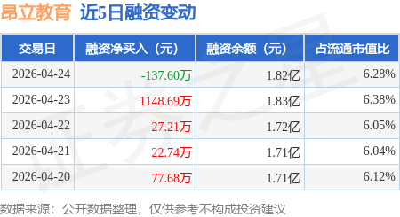 证券之星消息,4月24日,昂立教育(600661)融资买入738.74万元,融资偿还876.34万元,融资净卖出137.6万元,融资余额1.82亿元,近20个交易日中有12个交易日出现融资净买入。