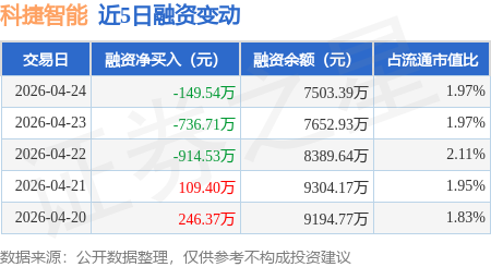 证券之星消息,4月24日,科捷智能(688455)融资买入1030.12万元,融资偿还1179.66万元,融资净卖出149.54万元,融资余额7503.39万元,近20个交易日中有12个交易日出现融资净买入。