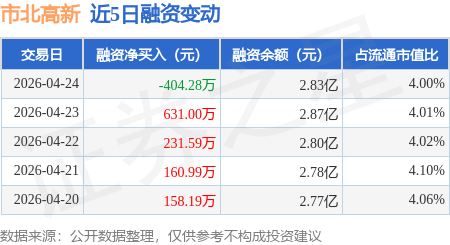 证券之星消息,4月24日,市北高新(600604)融资买入717.71万元,融资偿还1121.99万元,融资净卖出404.28万元,融资余额2.83亿元。