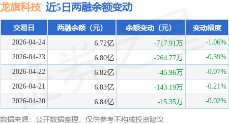 证券之星消息,4月24日,龙旗科技(603341)融资买入1817.14万元,融资偿还2523.71万元,融资净卖出706.58万元,融资余额6.68亿元。