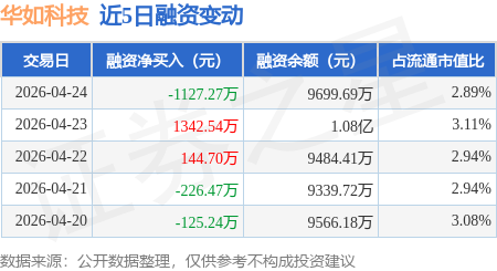 证券之星消息,4月24日,华如科技(301302)融资买入1481.21万元,融资偿还2608.48万元,融资净卖出1127.27万元,融资余额9699.69万元。