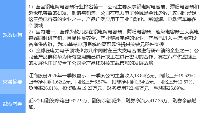 该股为被动元件,5G,华为产业链概念热股,当日被动元件概念上涨2.21%,5G概念上涨1.61%,华为产业链概念上涨1.3%。